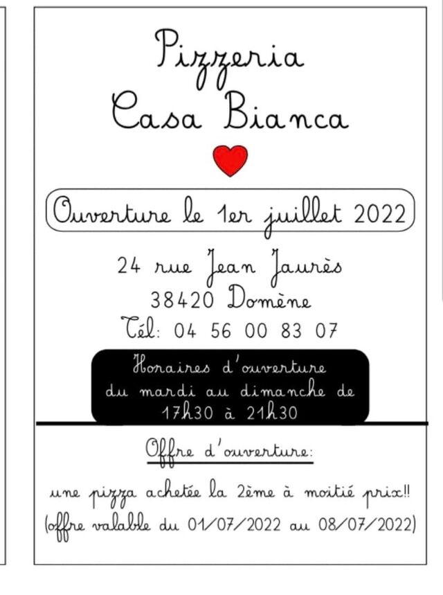Pizzeria Casa Bianca à ouvert ses portes ce vendredi 1er juillet !🍕.